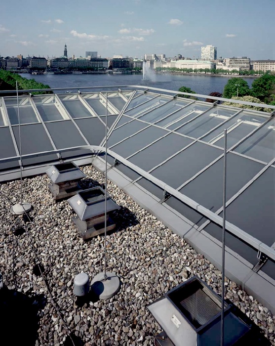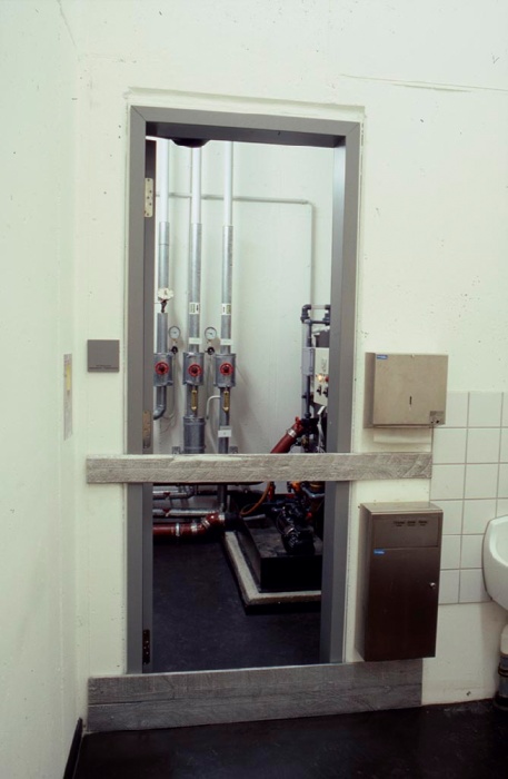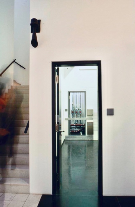 Der Maschinenraum als Ort der Zeitablagerung wurde bei der Planung des Gebäudes bewußt an der Nahtstelle zwischen dem eigentlichen Ausstellungsbereich und dem Museumsdepot gewählt. Der Maschinenraum ist als Raum im Raum mit eigenem Fundament konstruiert: jede Erschütterung wird abgefedert.